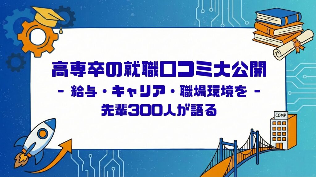 一般的な求人サイトとは違い、高専卒特有の配属(技術職など)や昇進スピード、技術者としての評価に特化した口コミを掲載しています。