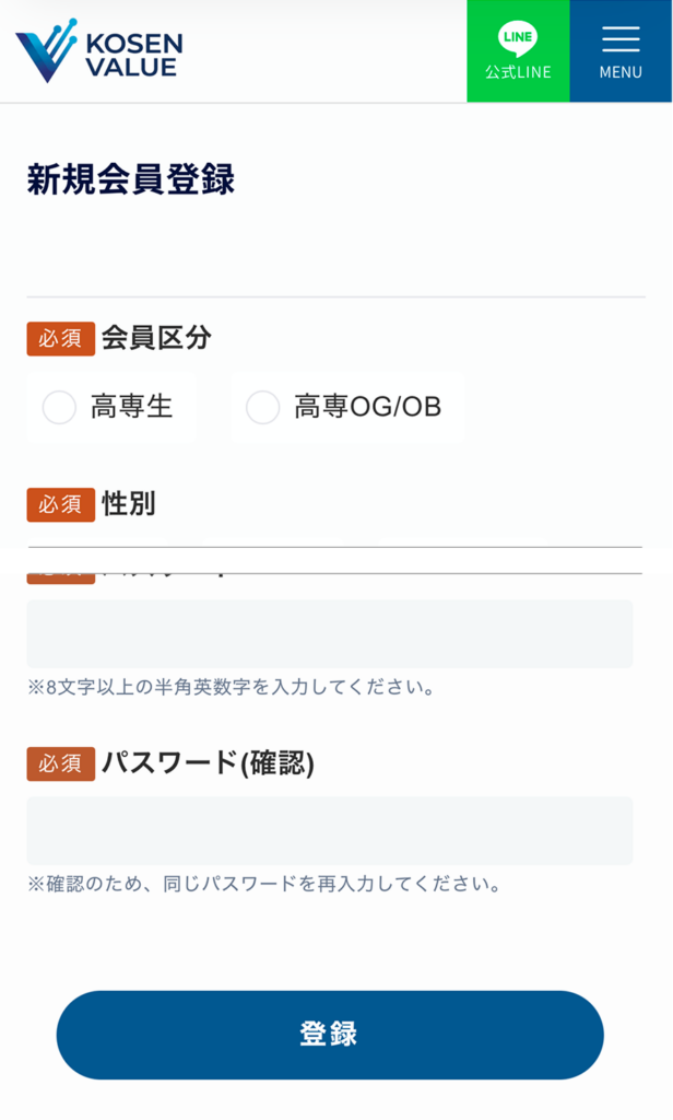 KOSEN VALUEは氏名&住所&電話番号などの個人情報が一切不要。