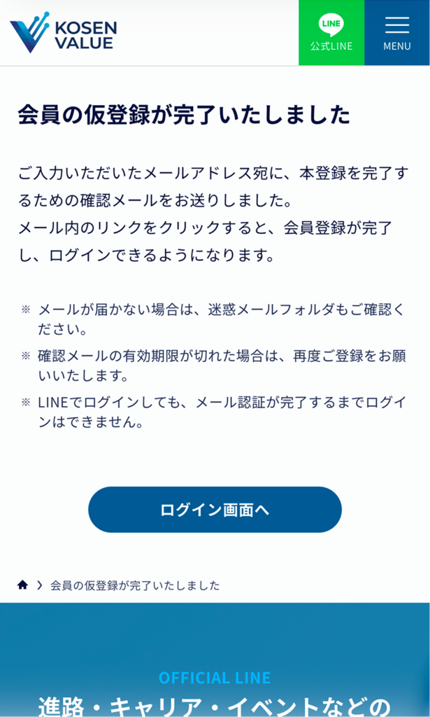 メールアドレスに確認メールが届くので、記載されたURLをタップして本登録完了!